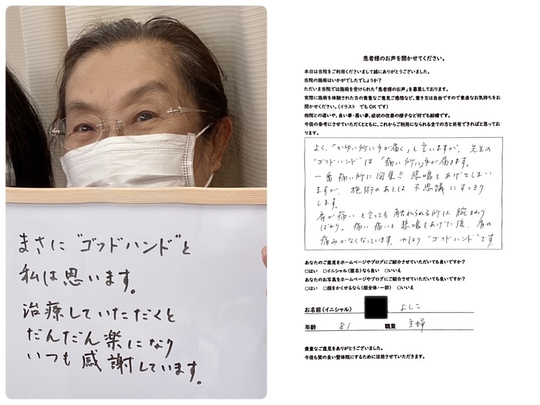 他院では治らなかった痛みなども改善されてきました。