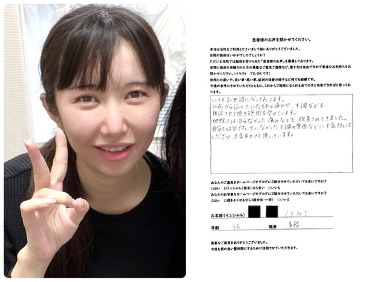 あんなに辛かった首の痛みも、毎日のように続いた頭痛も1回目からウソのように軽くなり目の前が明るくなったことに本当に驚き、非常に大きな効果を実感しました。